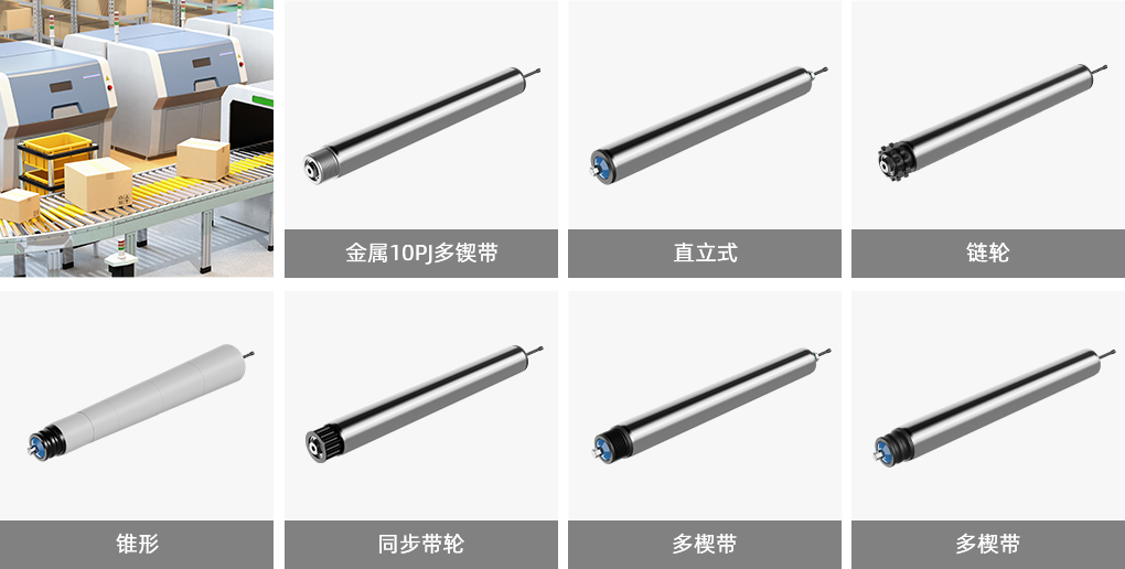 - 標準化產(chǎn)品:一般滾筒電機的尺寸為:300mm、400mm、500mm、800mm,p50mm、p60mm、p76mm等多種直徑。以及直通式、塑膠多楔帶、金屬多楔帶、鋼制雙鏈輪、同步帶輪等多種驅(qū)動鏈接方式,支持標準化生產(chǎn)制造。